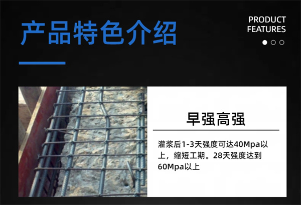1.早强高强:灌浆后1-3天强度可达40Mpa以上,缩短工期。28天强度达到60Mpa以上。
