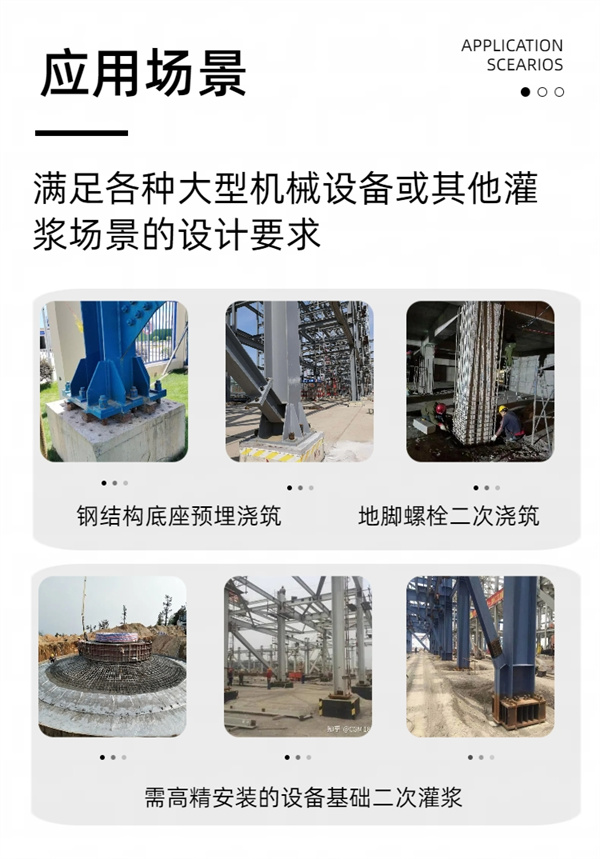 3.微膨胀: 浇注体凝固后能产生微膨胀,以保障设备与基础紧密接触,有效传递荷载。