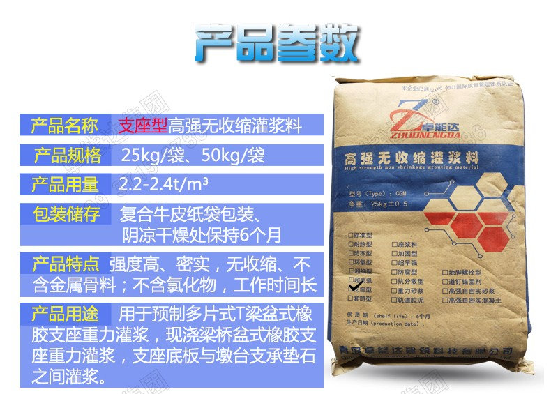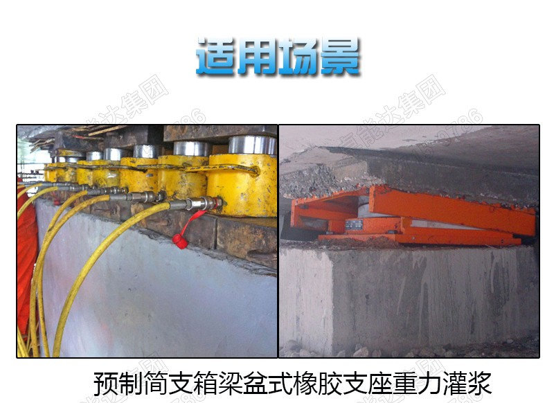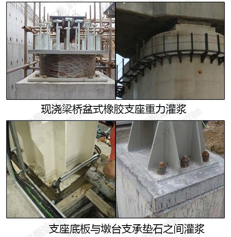 M50支座灌浆料应用于预制简支箱梁盆式橡胶支座重力灌浆、现浇梁桥盆式橡胶支座重力灌浆,支座底板与墩台支承垫石之间灌浆。